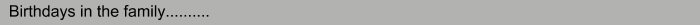| Name/Navn | Date/Dato | Notes/Bemærkning | | Bonnie | June 14, 1964 | | | Peter | October 1, 1958 | | | Christoffer | October 15, 1997 | | | Amalie | November 24, 1999 | | | Sofie | November 24, 1999 | | | Ove (Morfar) | February 4 | | | Grete (Mormor) | March 20, | | | Kajsa (Farmor) | March 21, 1925 | | | Svend (Farfar) | April 21, 1920 | | | Kirsten (Farfarkone) | October 28, | | | Moster Lene | July 19 | | | Fætter Brian | March 14 | | | Onkel Dan | March 30, 1958 | | | Tante Birgitte | | | | Faster Susanne | September 16, 1953 | | | Onkel Steen | August 7 | | | Fætter Thomas | September 8 | | | Kusine Katrine | August 10 | | | Faster Pernelle | October 28, 1964 | | | Onkel Patrick | | | | Fætter Laurent | | | | Kusine Sylvie | | | | Fætter Johan | August 18, 1964 | | | Annika | | | | Linus | | | | Hampus | | | | | |